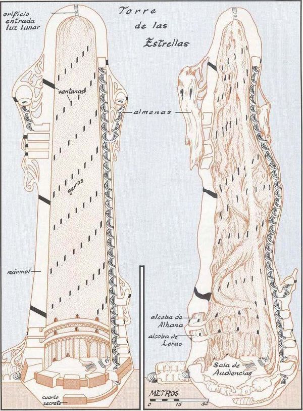 La Torre de las Estrellas no era ya una obra bella; relucía con un maligno fulgor verdoso y sus corredores y habitaciones se retorcían con el movimiento de la piedra viva.