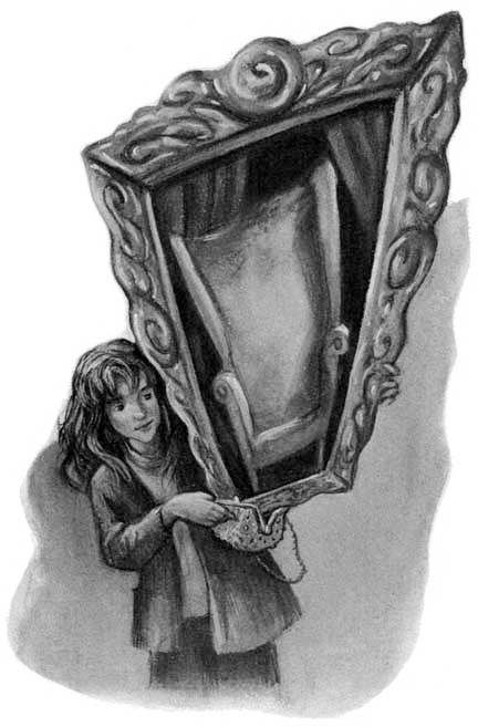 Juntos, trasladaron a la bruja al oscuro pasillo que conducía a la parte trasera del escenario. Hermione le arrancó varios pelos y los metió en un frasco de fangosa poción multijugos que sacó del bolsito de cuentas. Entretanto, Ron rebuscaba en el bolso de la bruja.