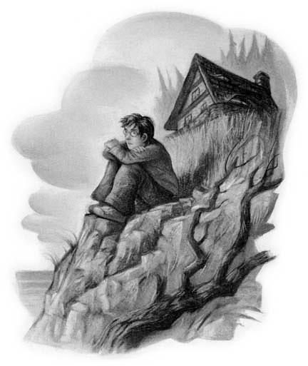 LA casita de Bill y Fleur, de paredes encaladas y cubiertas de conchas incrustadas, se alzaba aislada en lo alto de un acantilado que daba al mar; era un lugar precioso pero solitario. En cualquier sitio de la pequeña casa o del jardín que estuviera, Harry oía el constante flujo y reflujo de la marea, semejante al respirar de una criatura enorme y apaciblemente dormida. Durante los días siguientes, en vez de quedarse en la abarrotada vivienda, siempre se inventaba alguna excusa para alejarse y se iba en busca de la magnífica vista del cielo despejado, del ancho mar desierto que se divisaba desde el acantilado, y de la caricia del viento frío y salado en la cara.