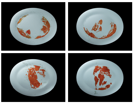 Durante tres meses, Neuenschwander registró en fotografías digitales la actividad de cientos de hormigas en un plato con un planisferio de carpaccio y transfirió luego las imágenes a 16 mm. En el film que se exhibe en loop, las hormigas parecen componer y descomponer el mapa, mimando caóticamente en un minuto la separación del supercontinente Pangaea, que podría haber existido durante las eras Paleozoica y Mesozoica y dado origen a los actuales continentes después de un proceso de millones de años.
